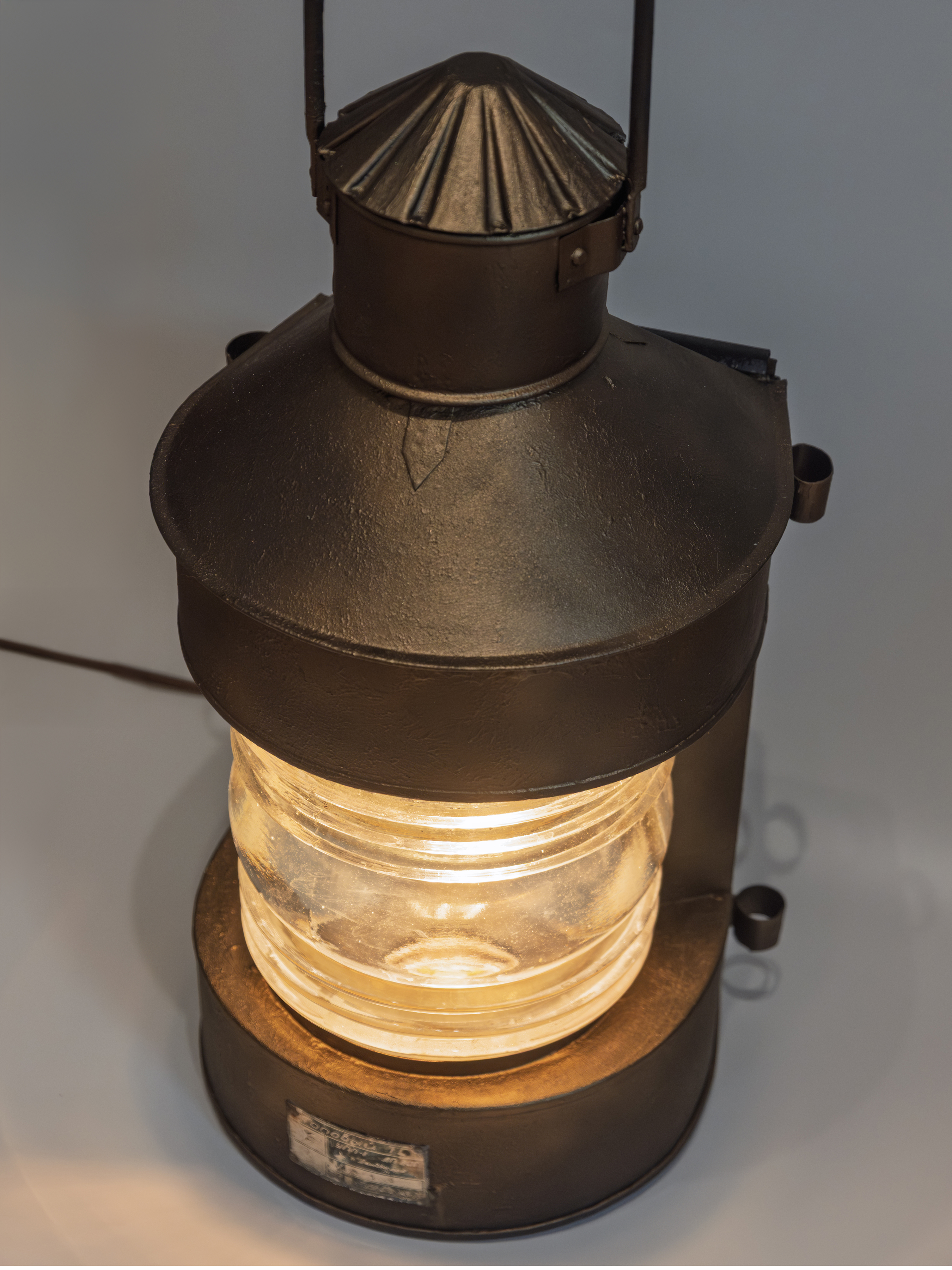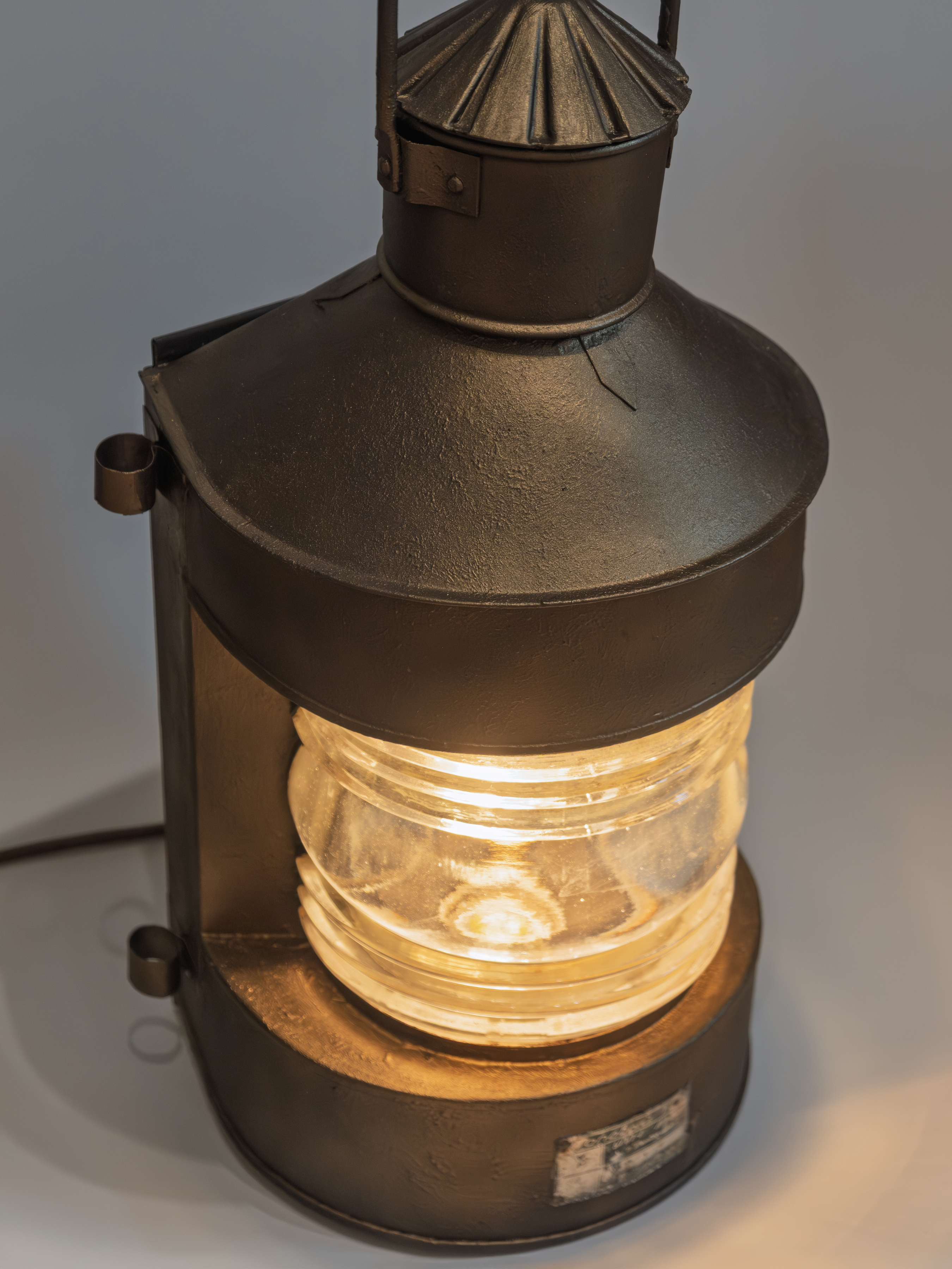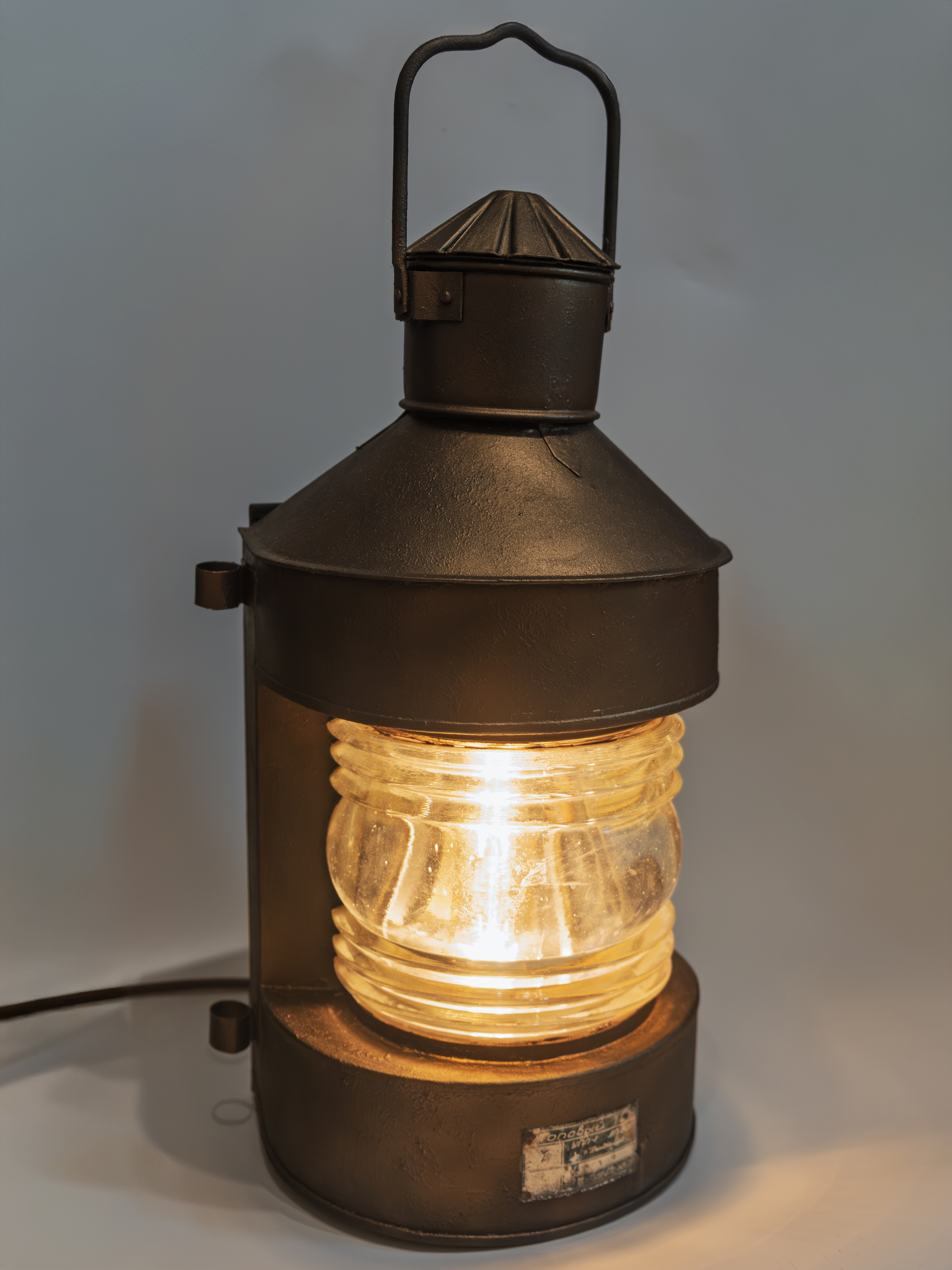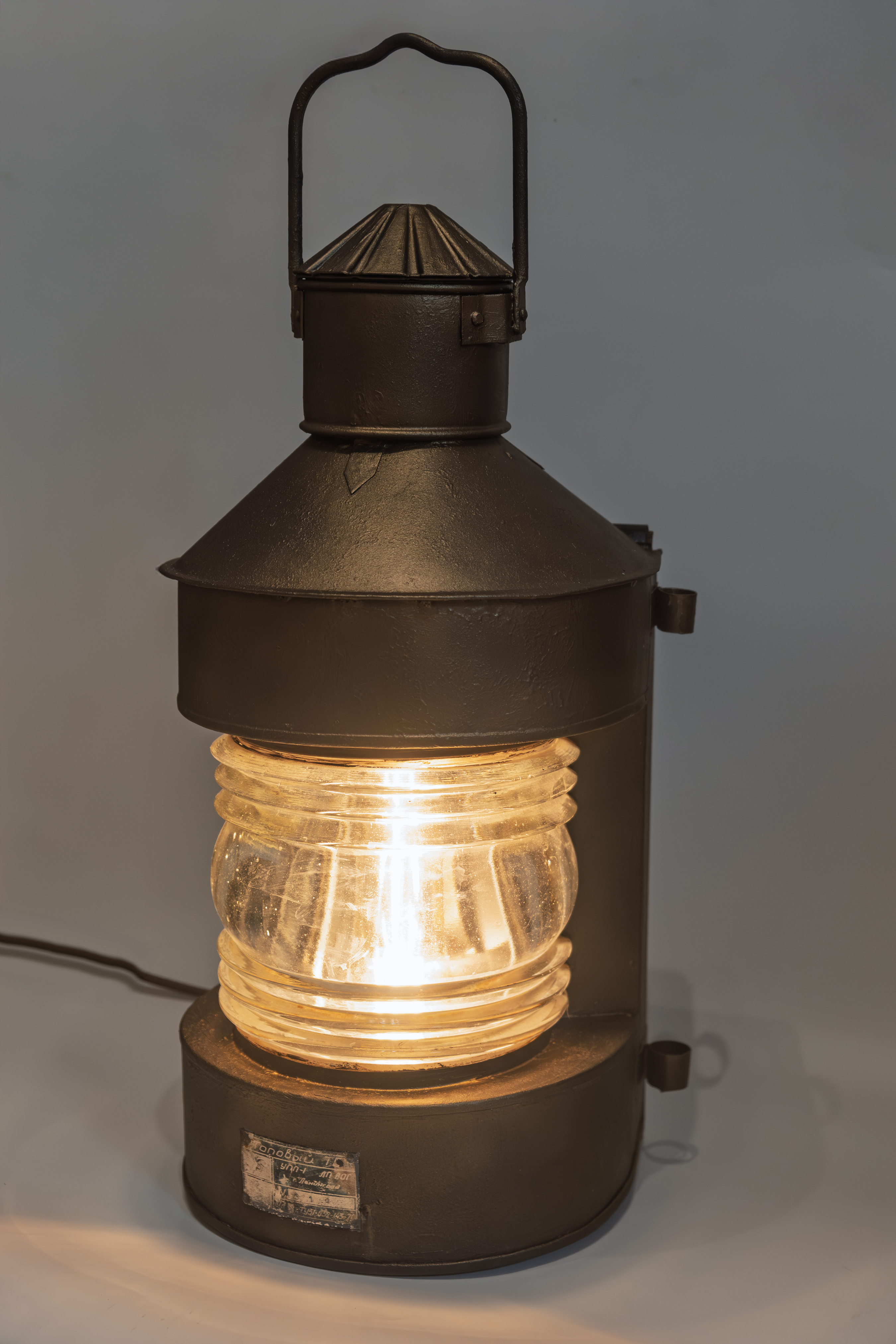 Этот предмет создан на основе подлинного корабельного топового фонаря модели «Топовый ТС», произведённого в Ленинграде в 1970 году. На корпусе сохранена оригинальная заводская плашка с указанием модели, серийного номера и даты выпуска. Таким образом, возраст фонаря на сегодняшний день составляет 56 лет.