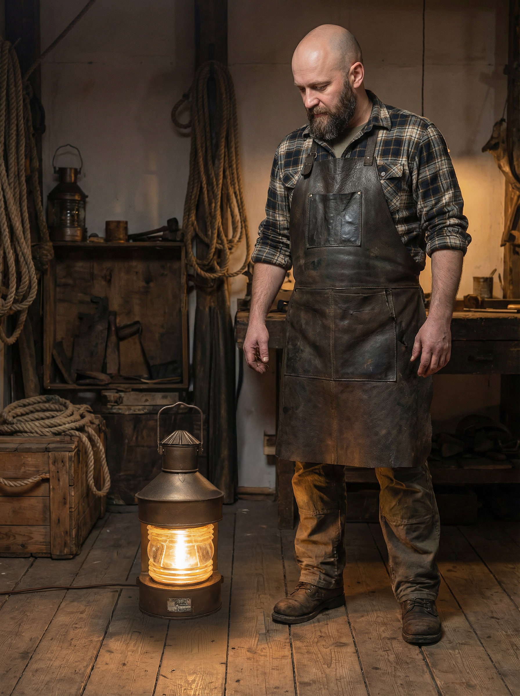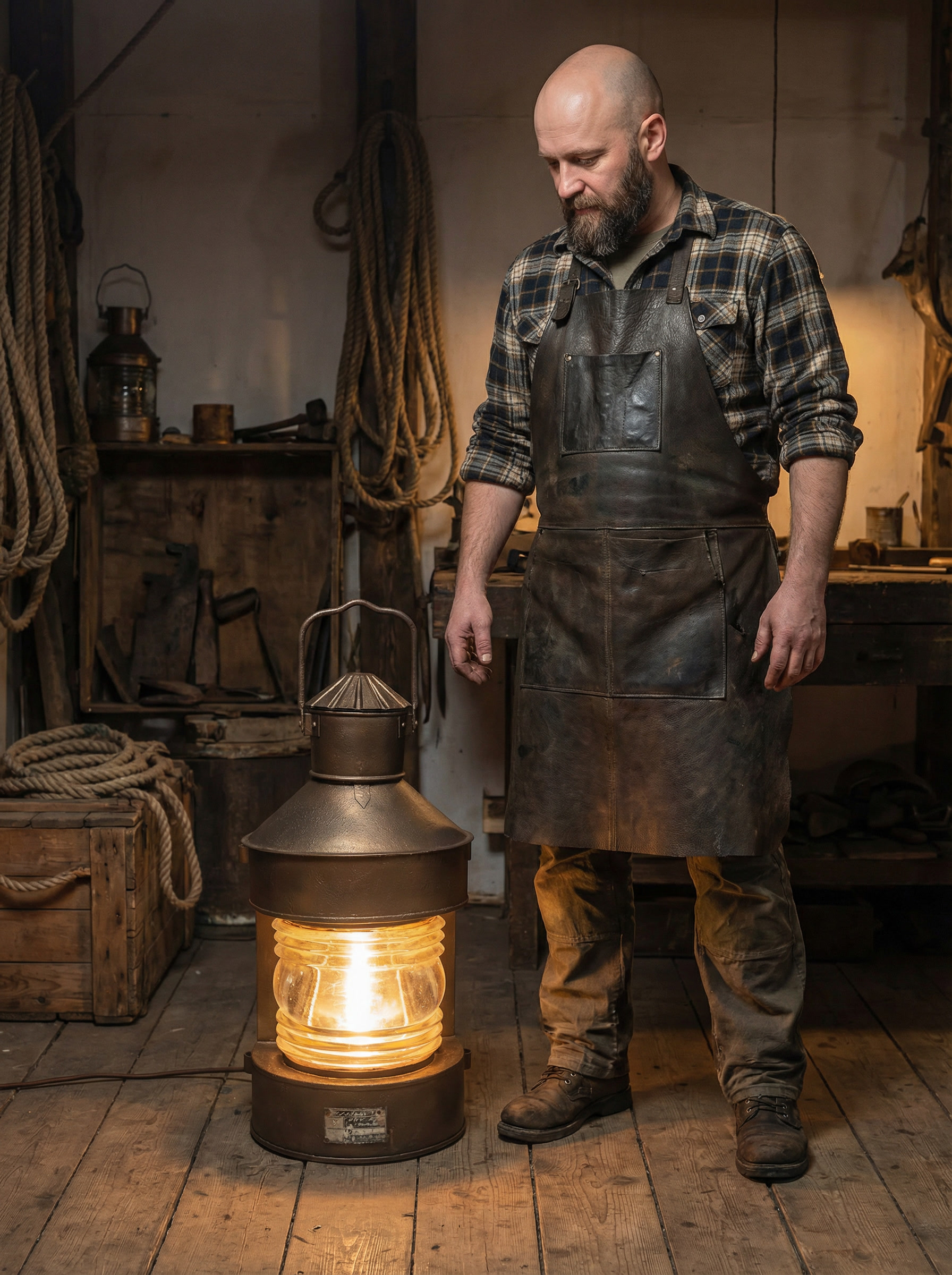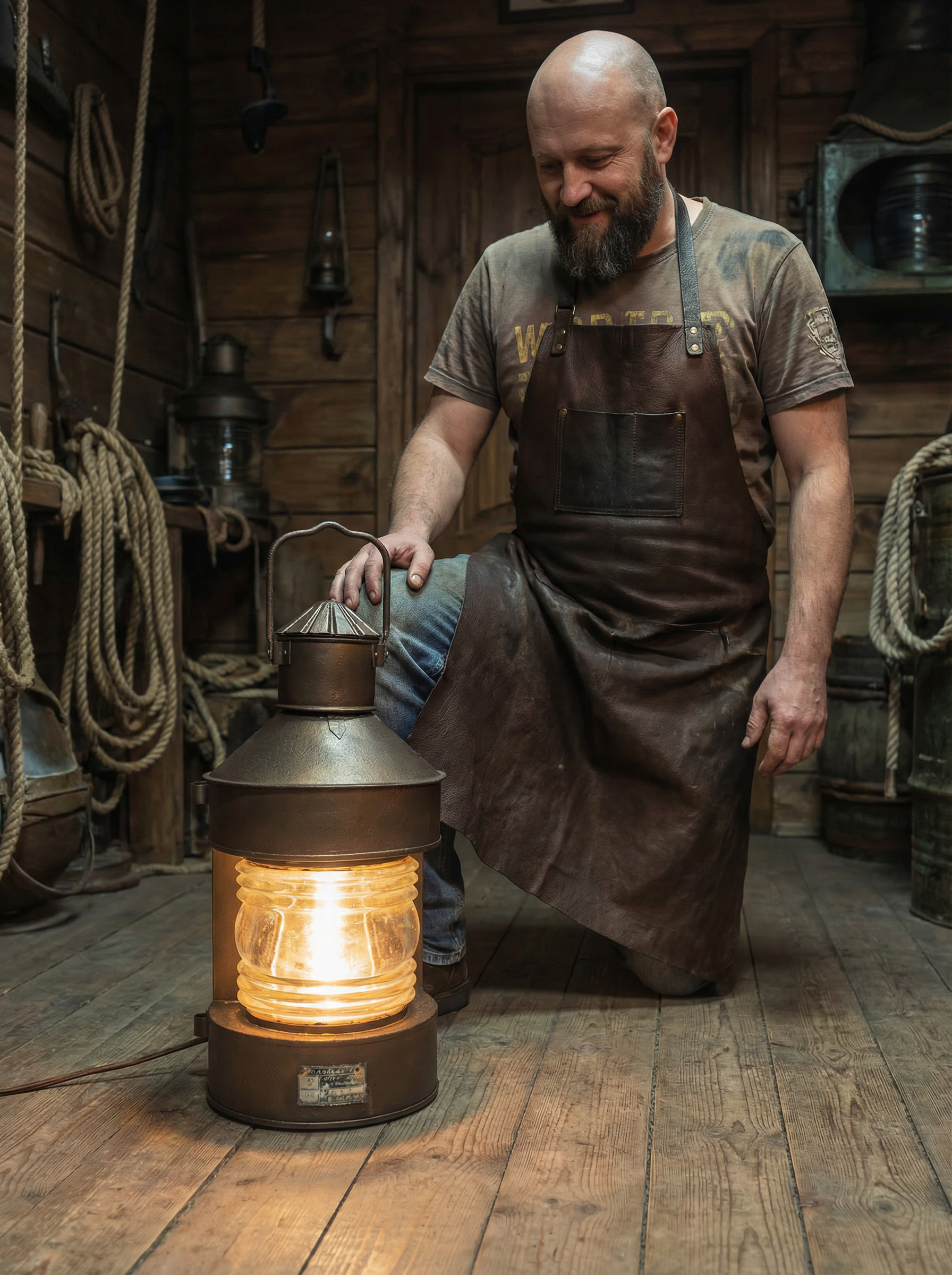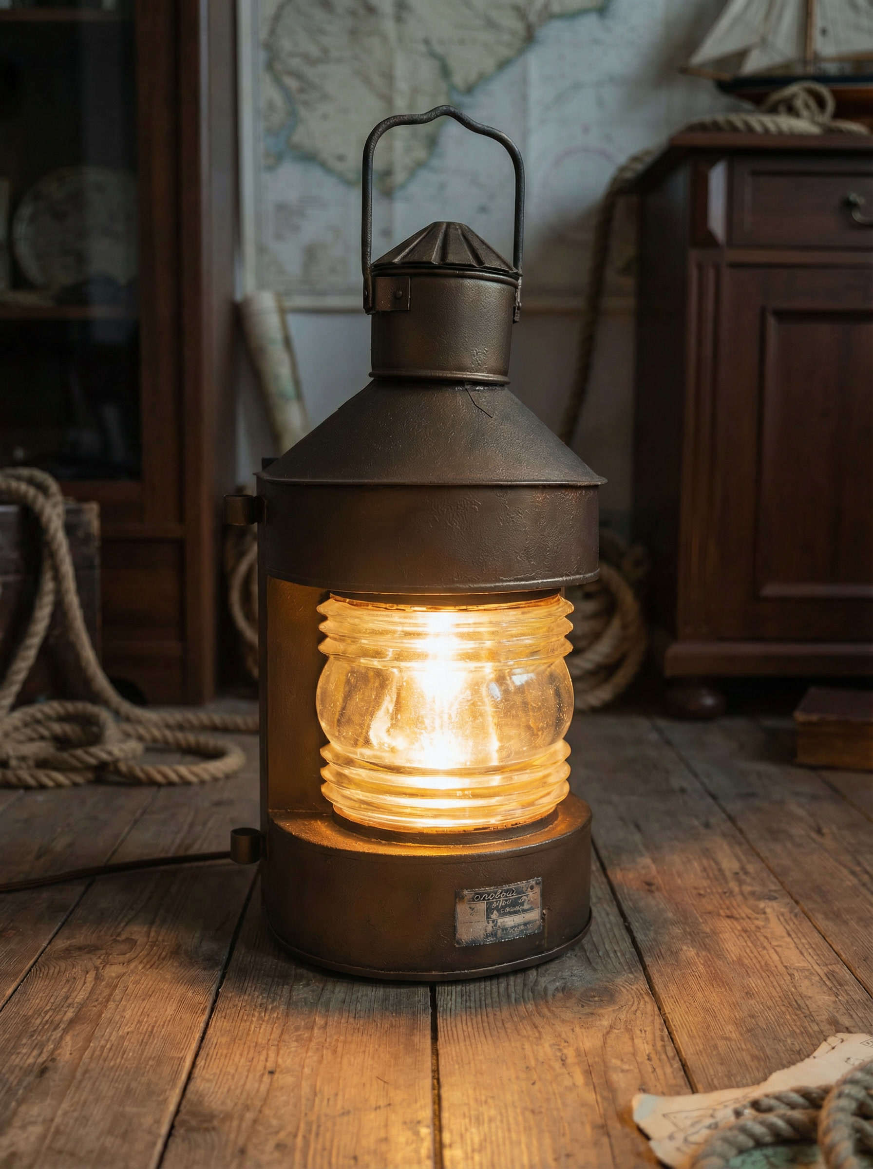 Этот объект рассчитан на размещение на полу или низких поверхностях. Он подходит для интерьеров в морской, индустриальной или лофт-эстетике, для частных пространств, мастерских и общественных помещений. Благодаря своему масштабу и происхождению он воспринимается не как декоративный светильник, а как самостоятельный интерьерный акцент с реальной историей.
