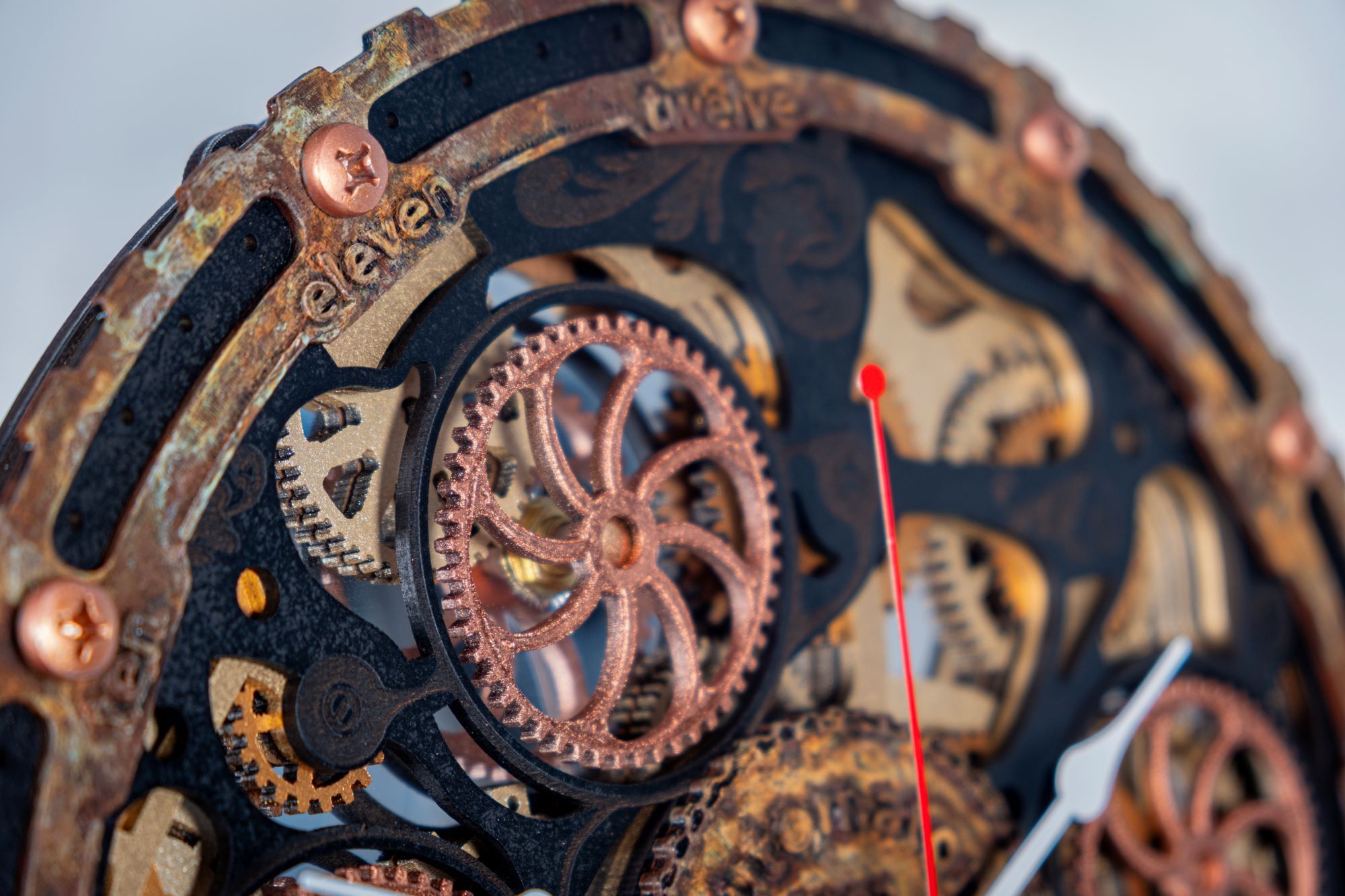 Многослойная структура отсылает к внешнему виду механических наручных часов и загадочных механизмов прошлого. При создании этой серии мы вдохновились работами Итало Фонтана, основателя и дизайнера итальянской часовой марки U-Boat.