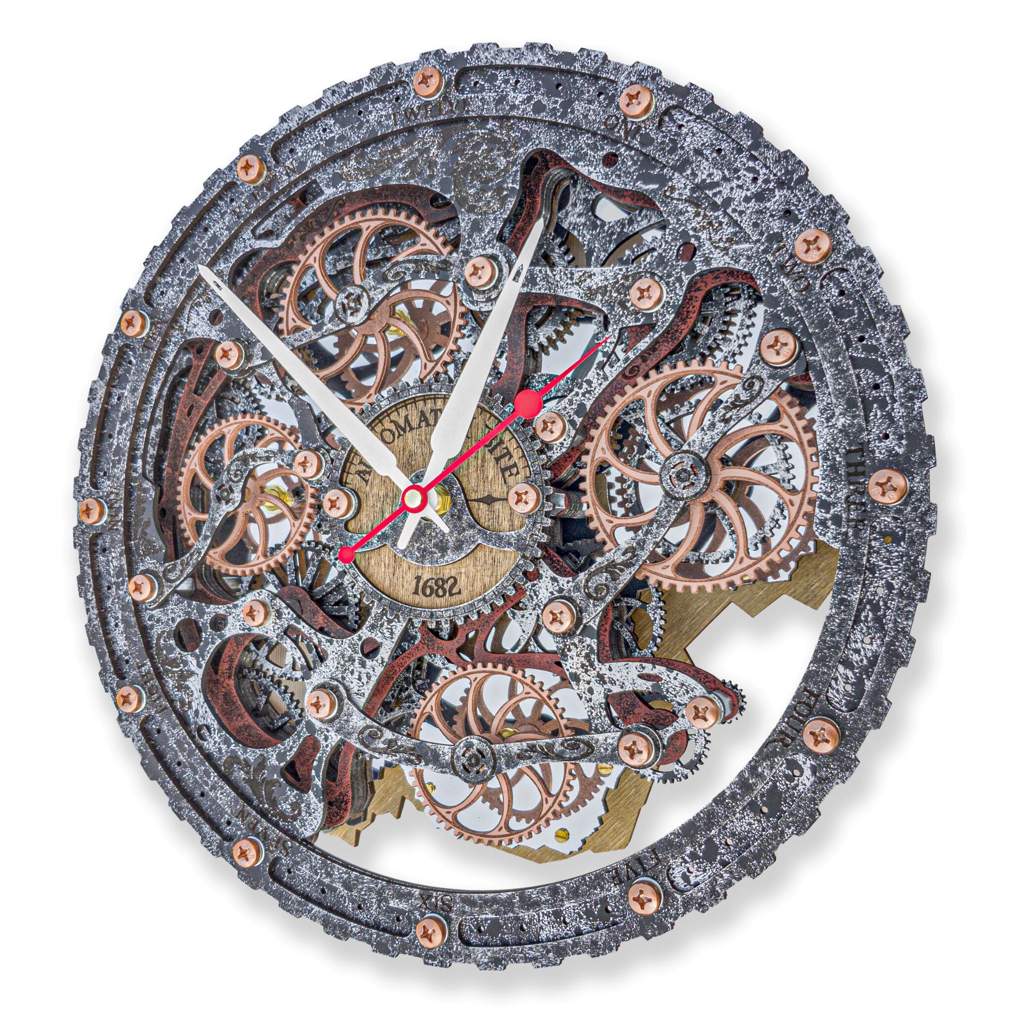 «Автоматон Bite 1682 Circle Старый металл» – не просто часы, а впечатляющий арт-объект, в котором сплелись эстетика стимпанка, винтажный шарм и мастерство ручной работы. Этот настенный механизм мгновенно притягивает взгляд и переносит нас в атмосферу старинной мастерской, где техника встречается с искусством.
