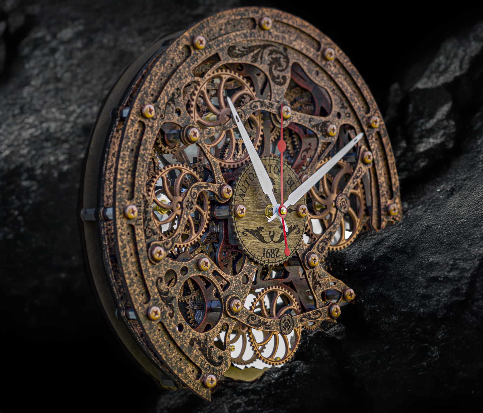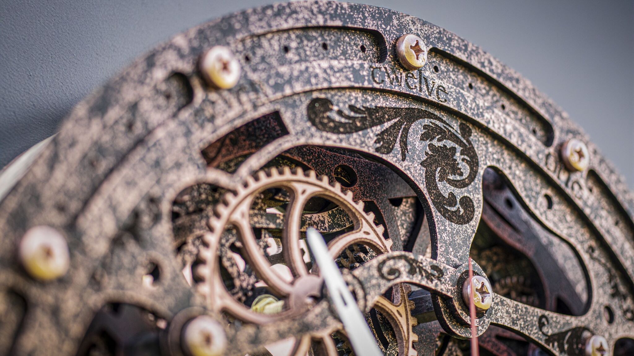 На создание этих часов нас вдохновила случайно увиденная татуировка в стилистике стимпанк, которая на наш взгляд странным образом заключала в себе идею с одной стороны эфемерности понятия времени, с другой стороны его осязаемость и материальность, к которой буквально можно прикоснуться.