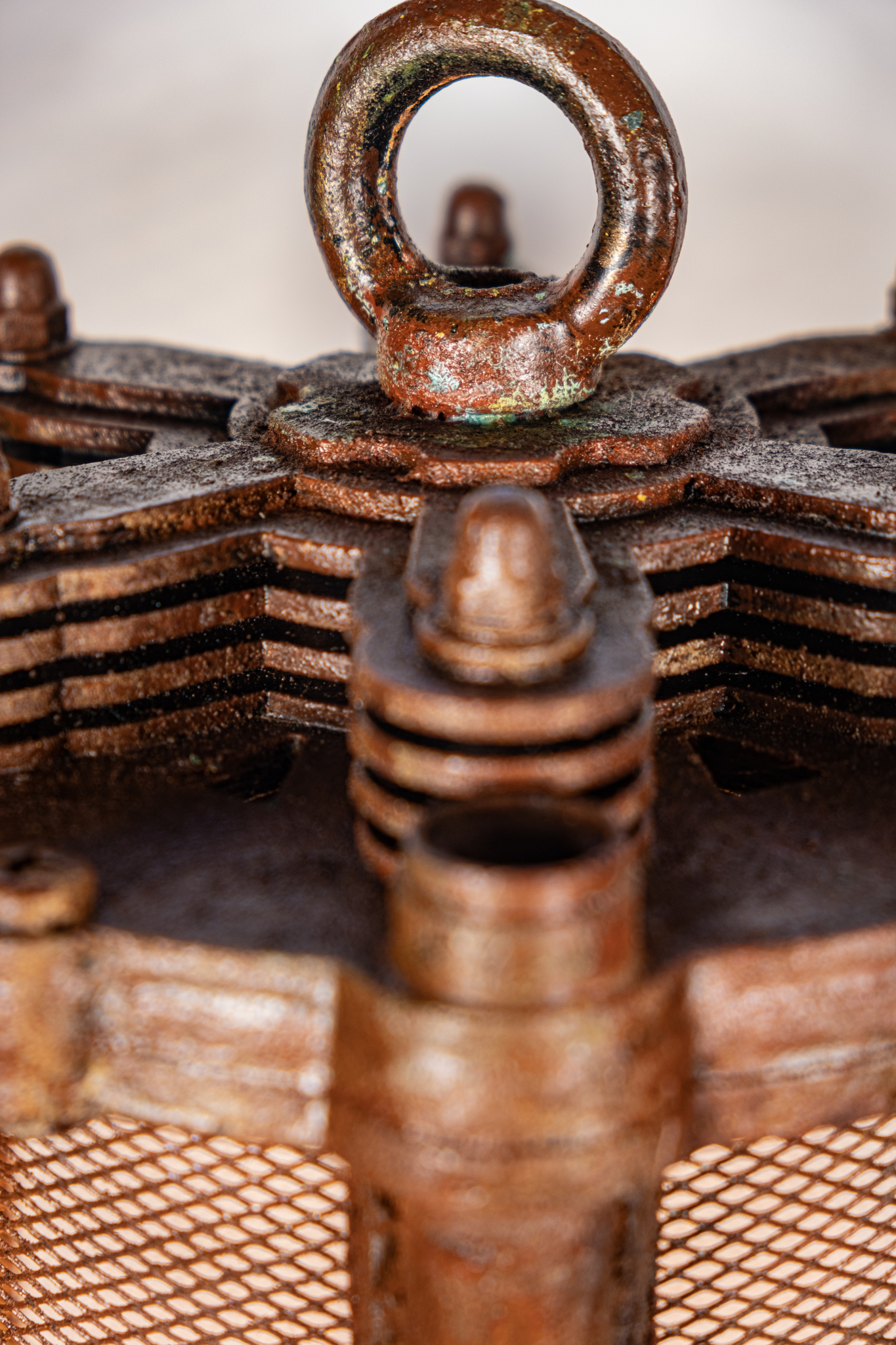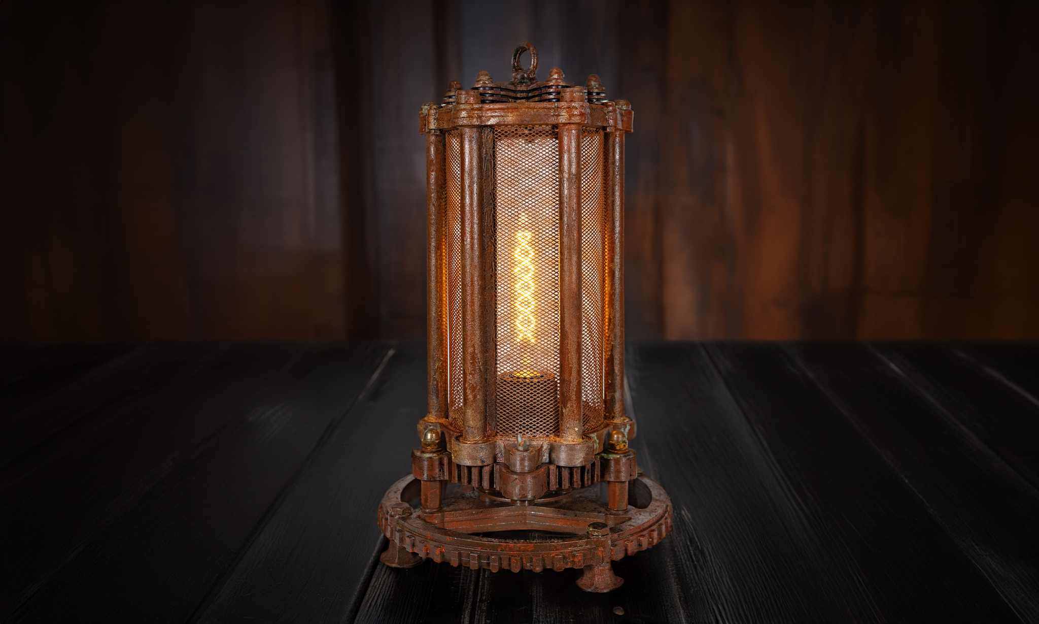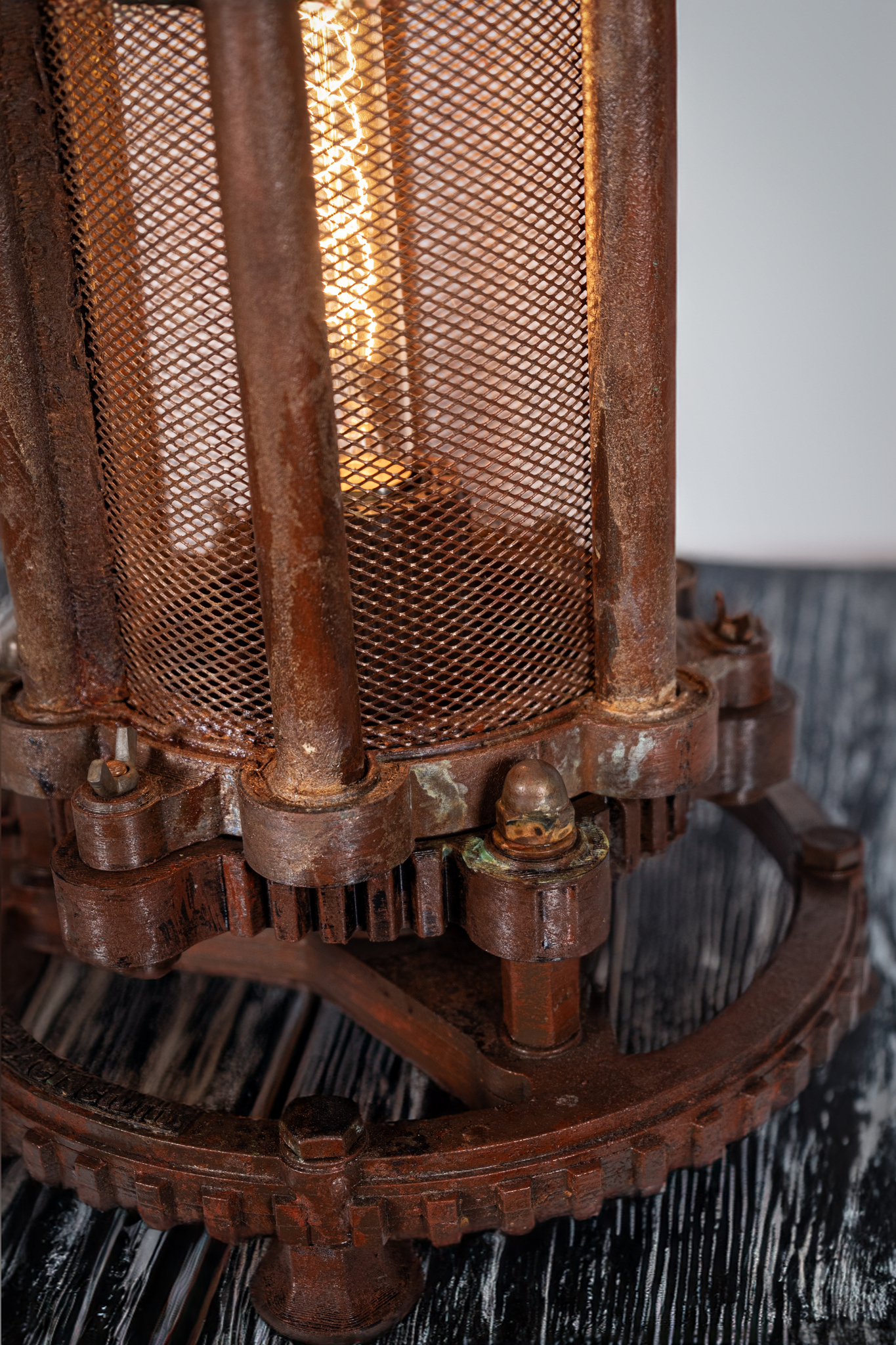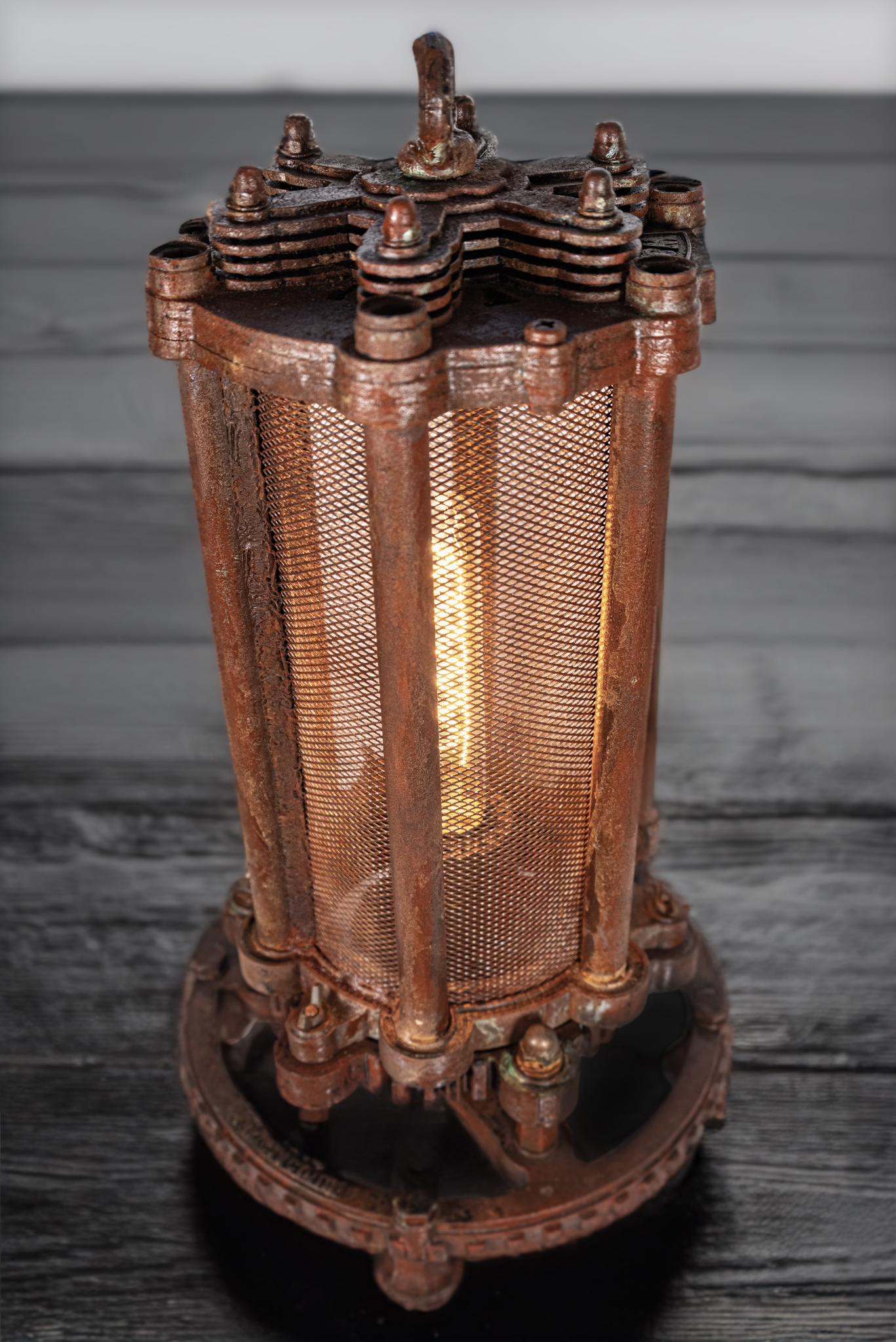Светильник "Артефакт" словно древний загадочный механизм, покрытый настоящей стабилизированной ржавчиной и окисью, что придает ему неповторимый характер и историческую аутентичность. Внутри светильника установлена винтажная лампа с теплым светом, которая создает волшебную и уютную атмосферу в вашем помещении. Яркий тканевый кабель дополняет образ, создавая удивительный контраст и подчеркивая эксклюзивность дизайна.