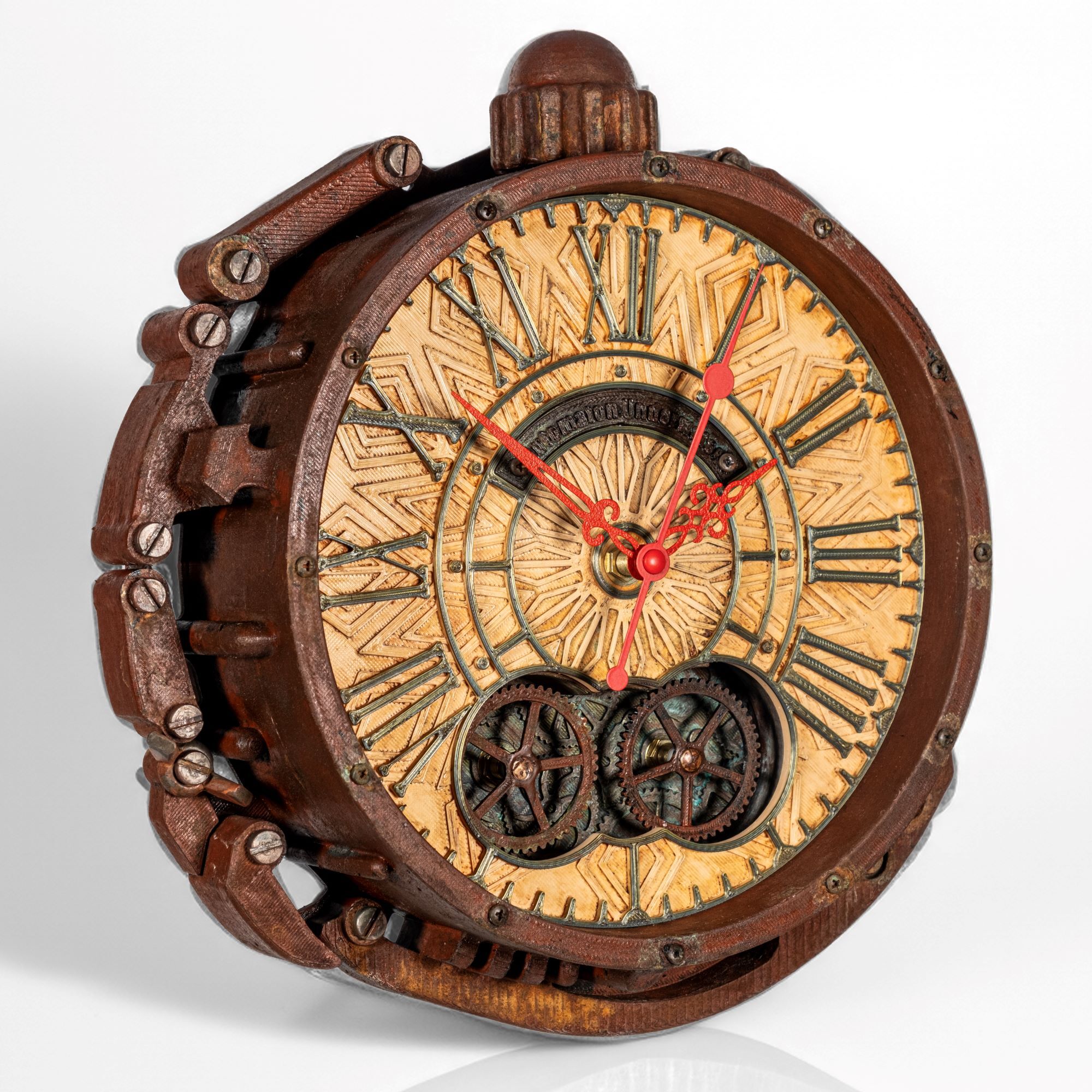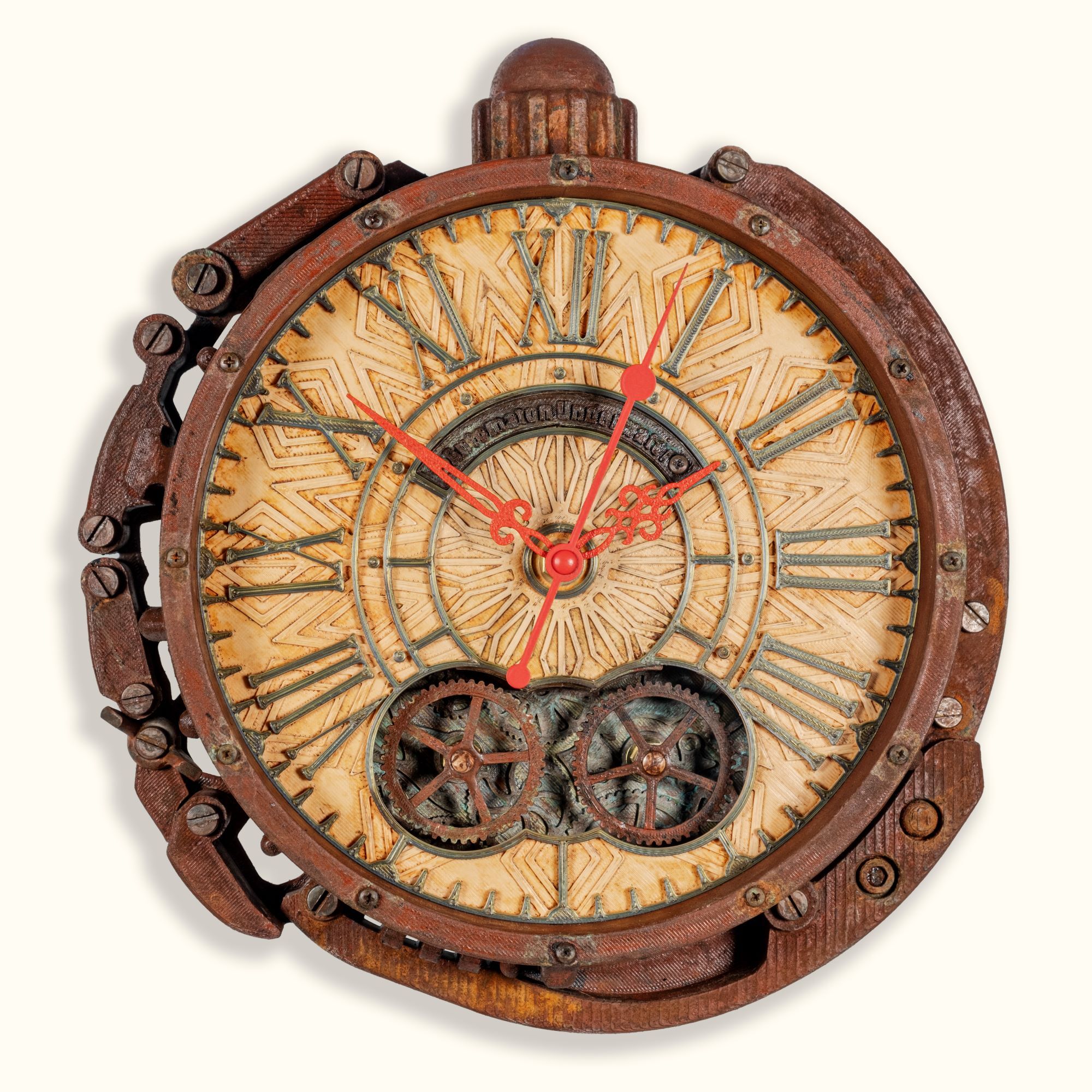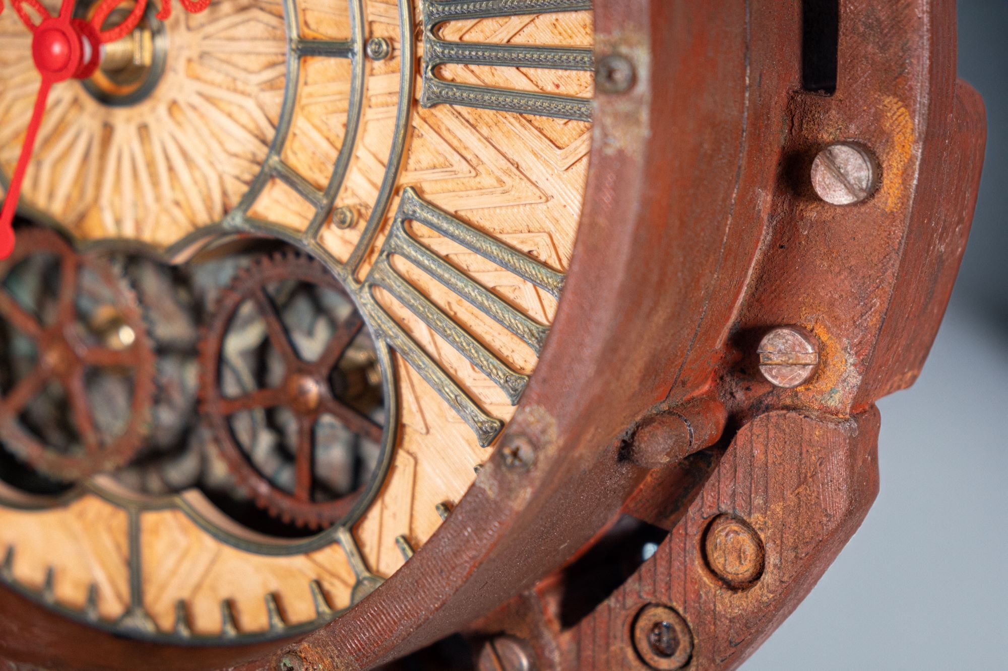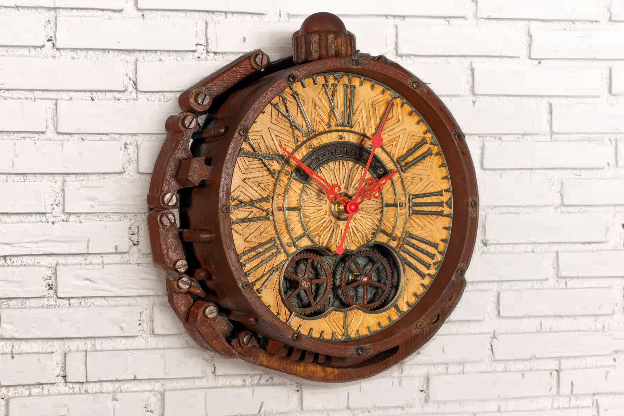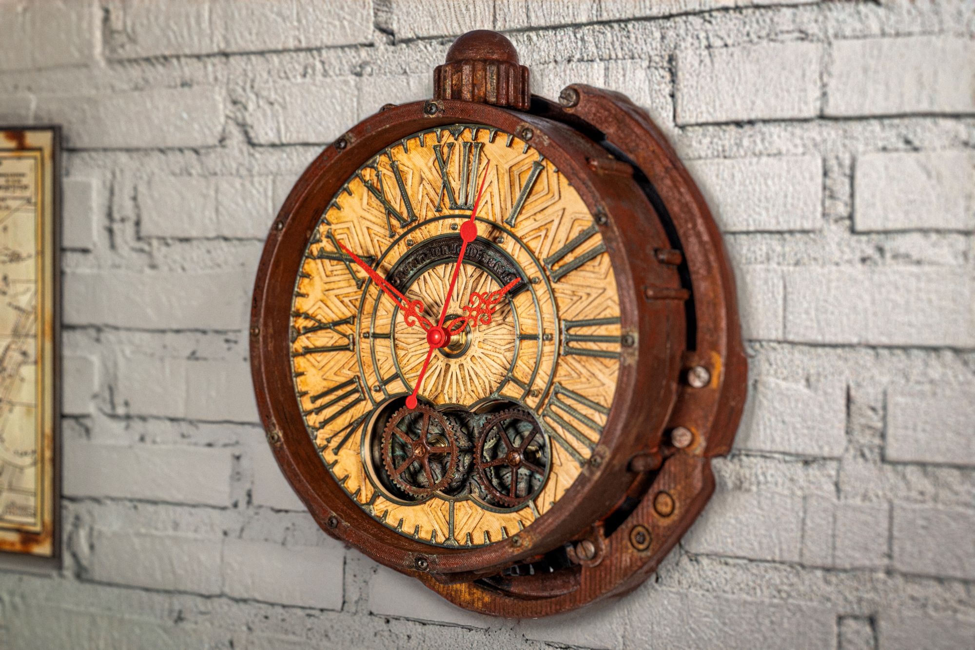 Долго искал что-то необычное для кабинета, и эти часы оказались точным попаданием. Вживую выглядят ещё интереснее, чем на фото — шестерёнки действительно крутятся, эффект ржавчины выглядит натурально. Очень атмосферно, будто из старой подводной лодки. Спасибо мастерам!