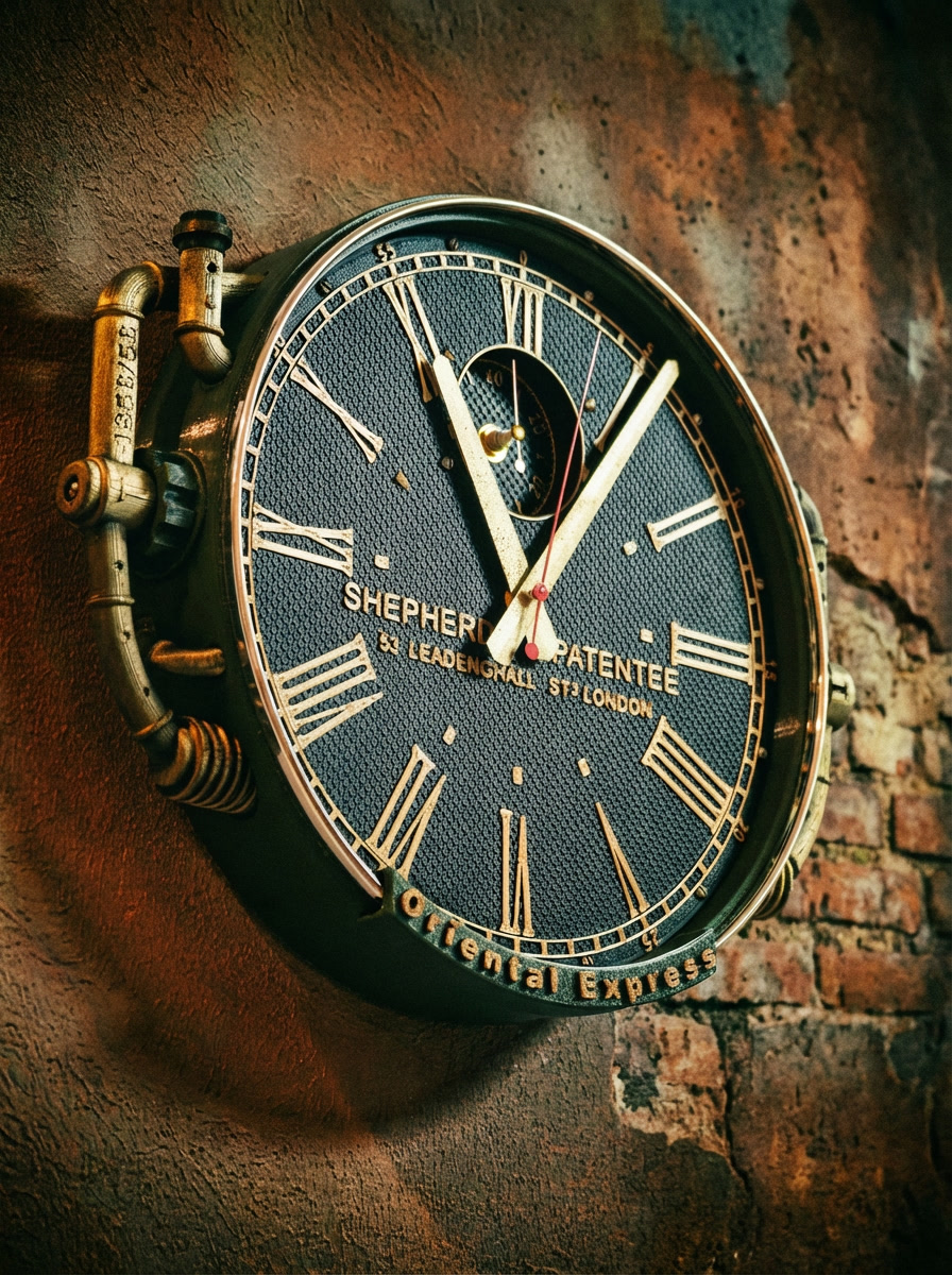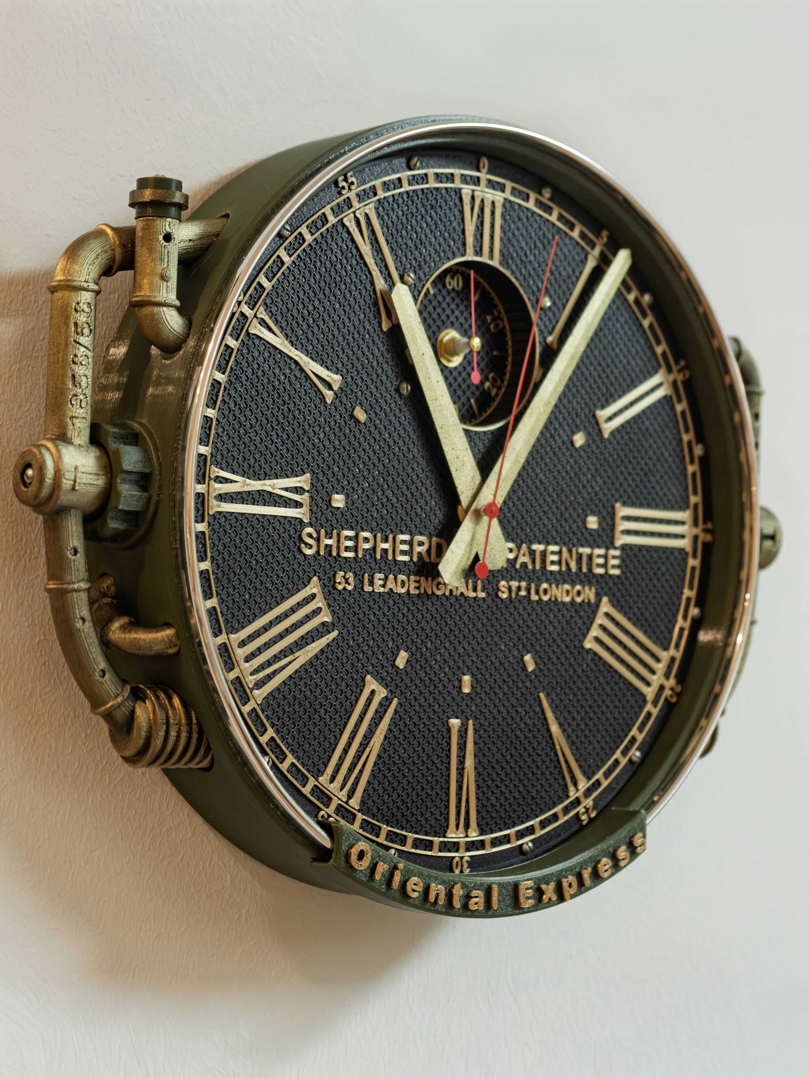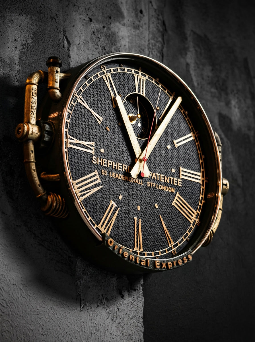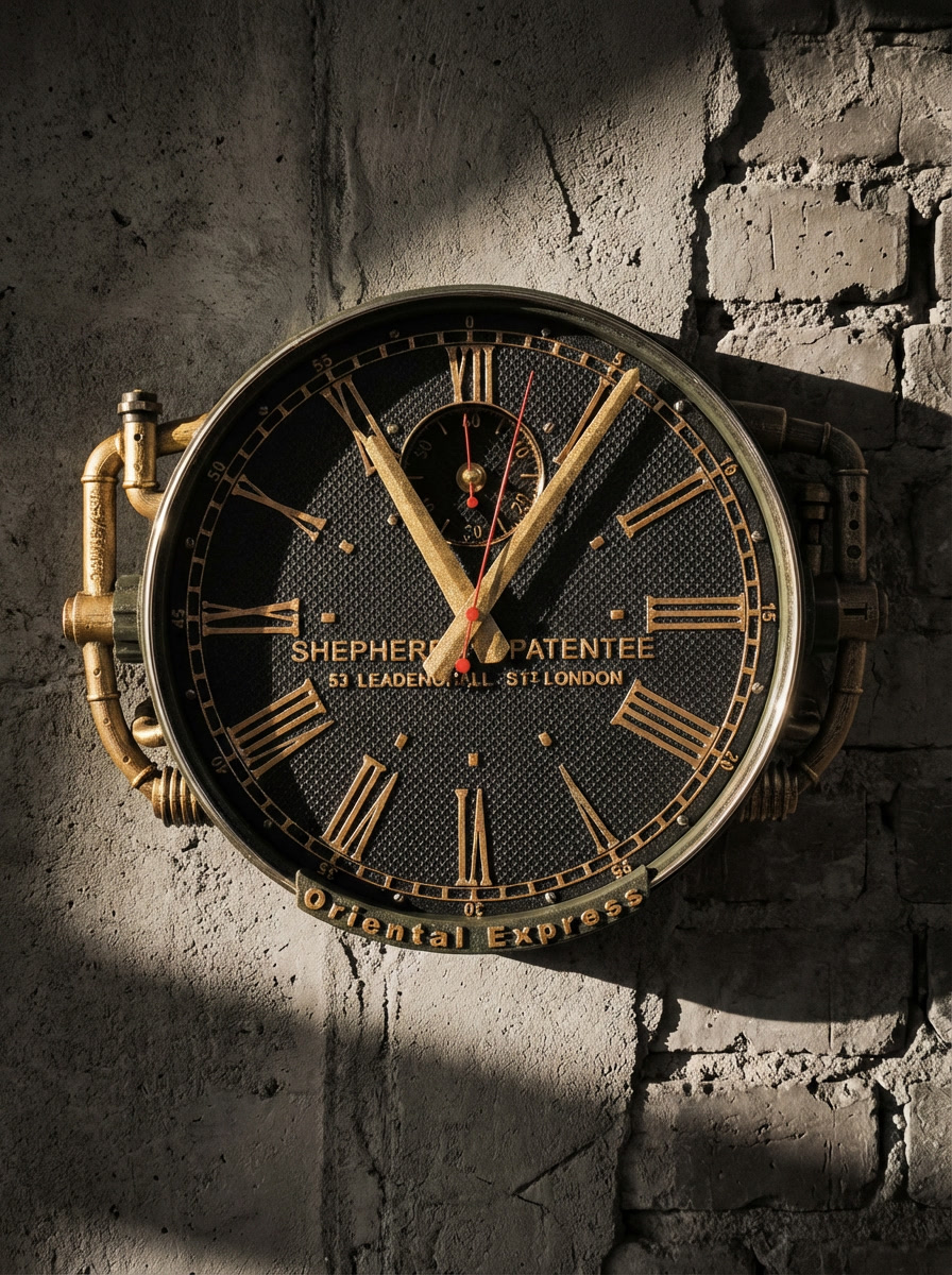 «Oriental Express» - настенные часы, выполненные в духе инженерной эстетики рубежа XIX и XX веков. Образ отсылает к эпохе, когда техника была видимой, а конструкция не скрывалась за декоративными оболочками.