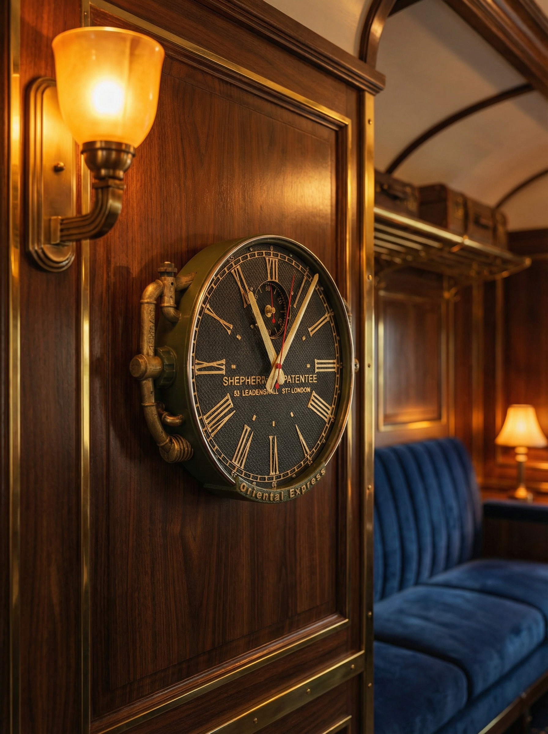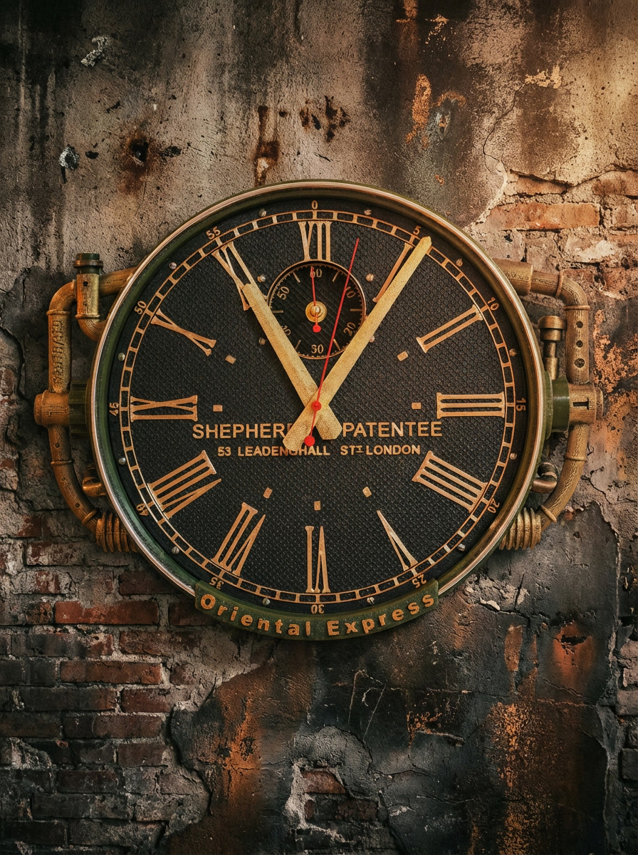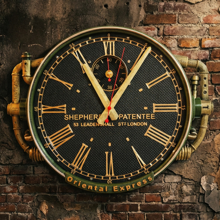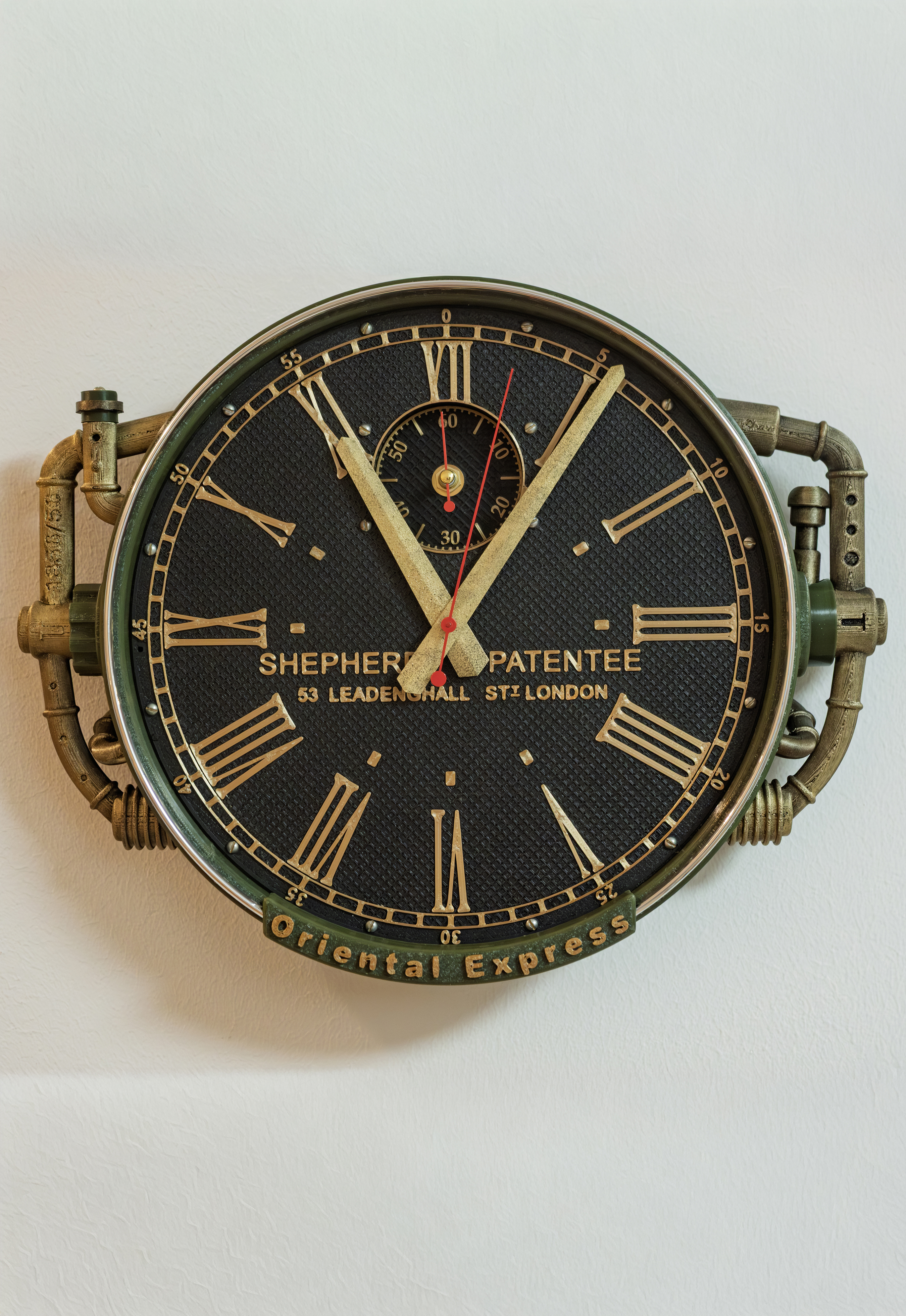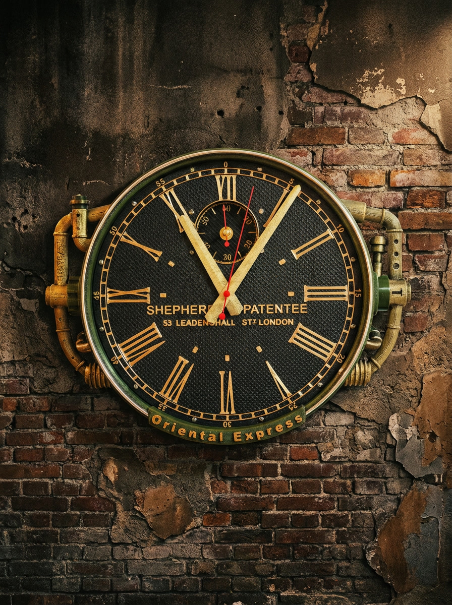 «Oriental Express» - настенные часы, выполненные в духе инженерной эстетики рубежа XIX и XX веков. Образ отсылает к эпохе, когда техника была видимой, а конструкция не скрывалась за декоративными оболочками.