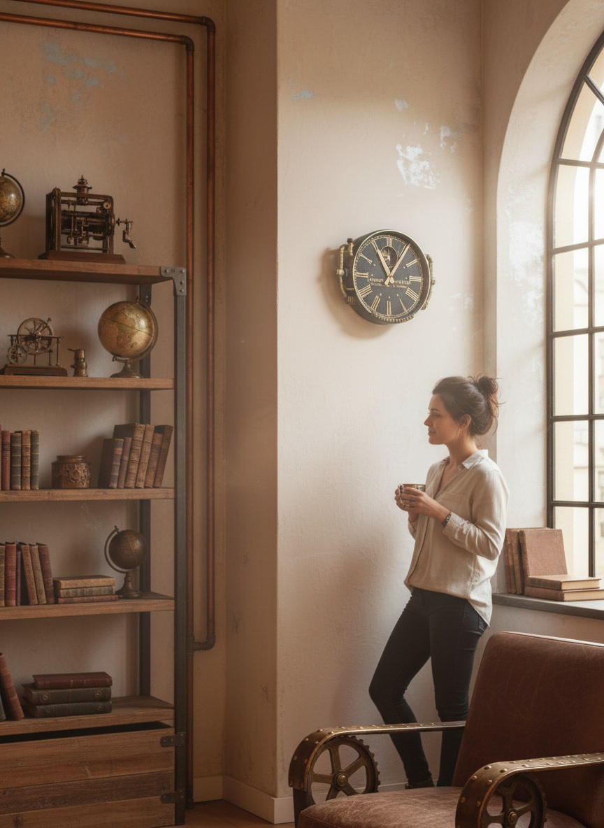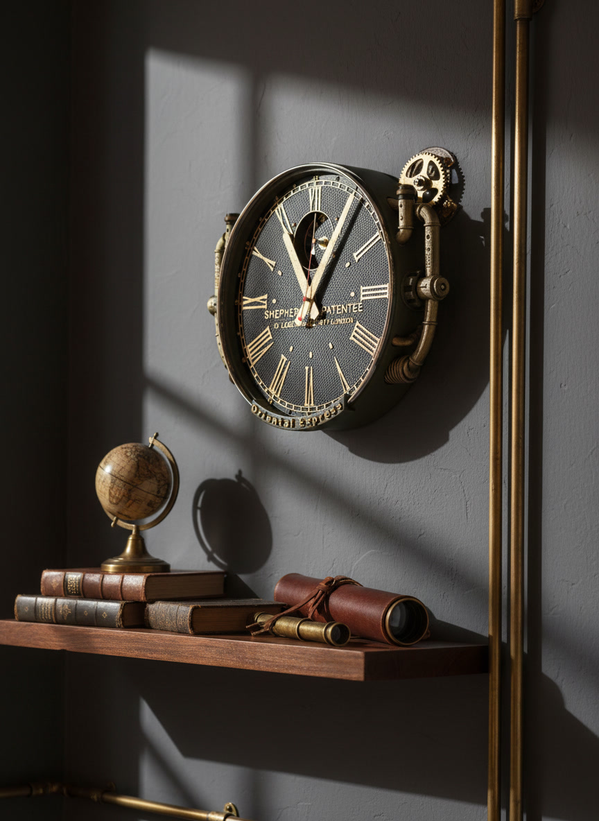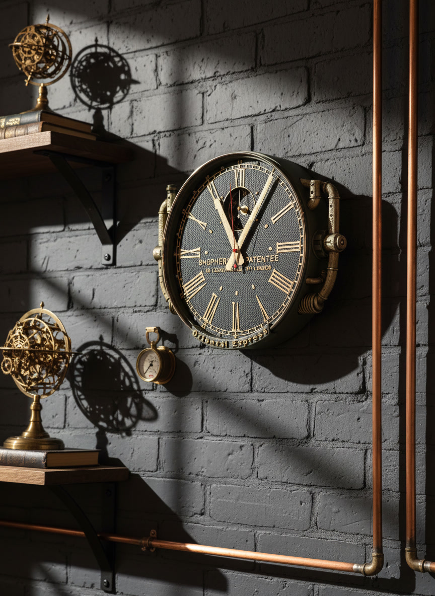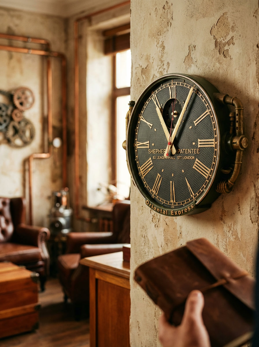 «Oriental Express» - настенные часы, выполненные в духе инженерной эстетики рубежа XIX и XX веков. Образ отсылает к эпохе, когда техника была видимой, а конструкция не скрывалась за декоративными оболочками.
