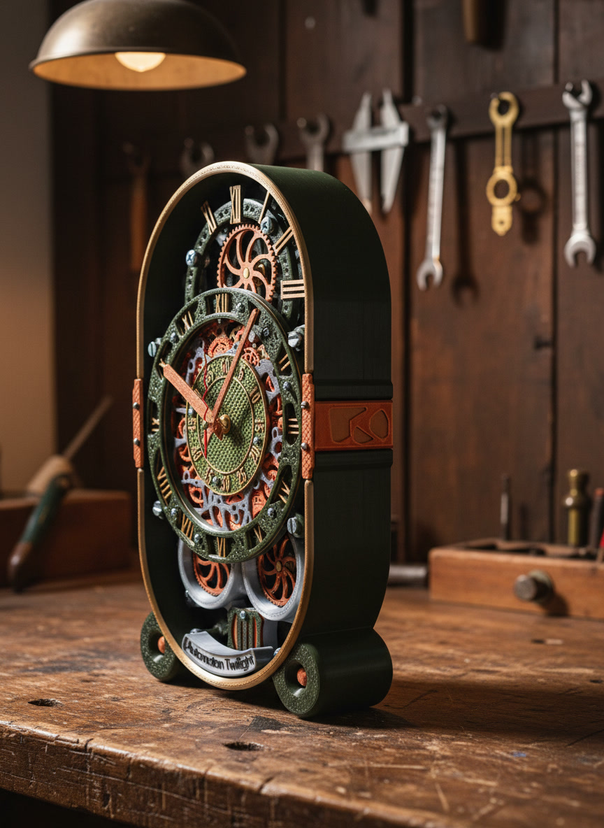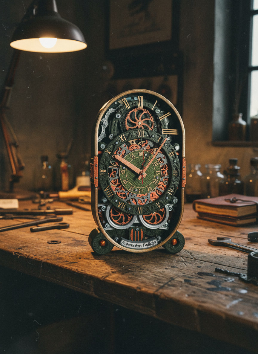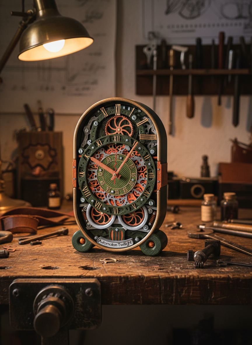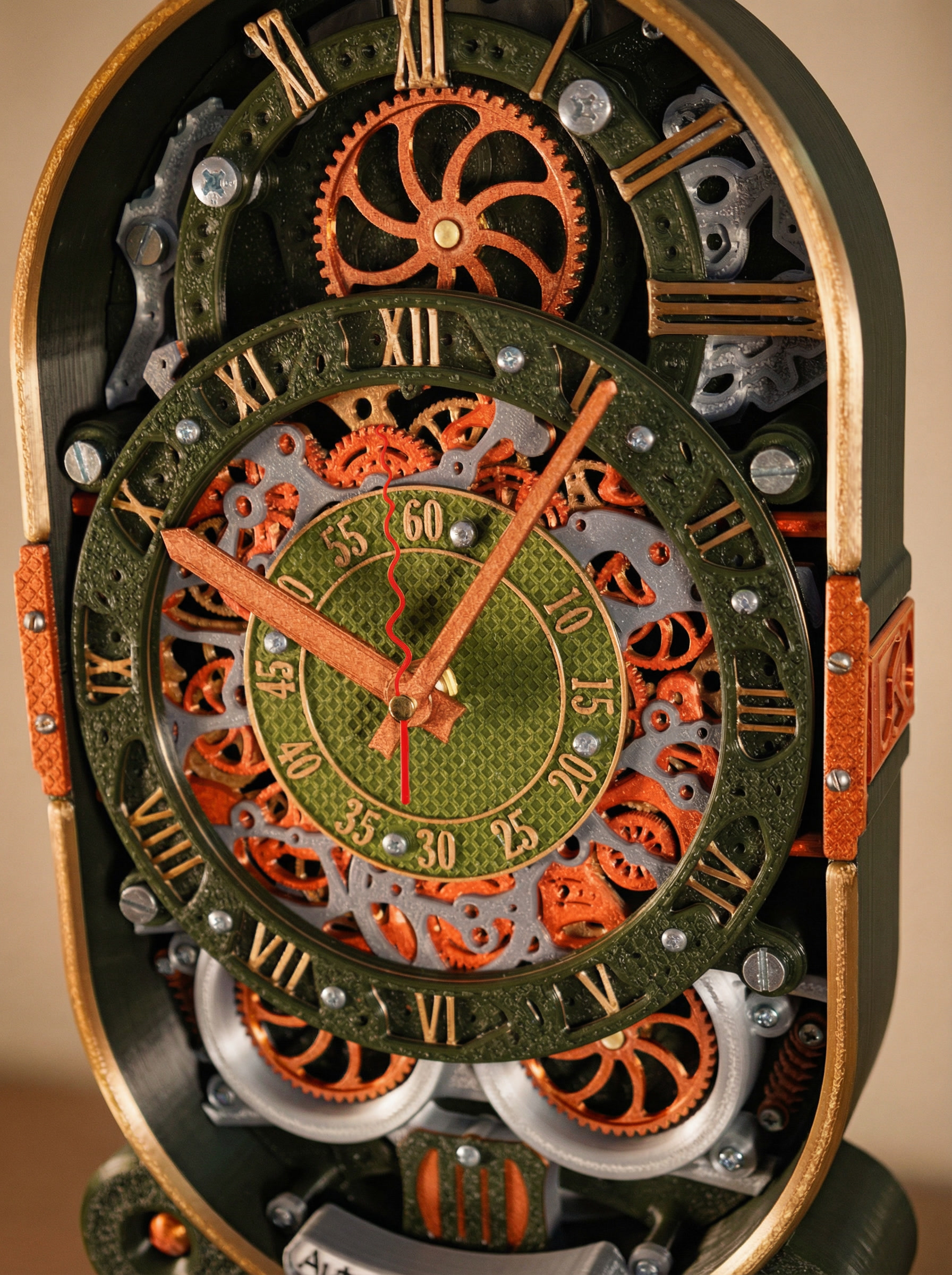 Эти уникальные настольные часы — не просто функциональный предмет, но настоящее произведение искусства, воплощающее в себе гармонию современных технологий и художественного замысла. Созданные методом 3D-печати из высококачественного полимера, они сочетают в себе несколько дизайнерских стилей и идею сумерек, что отражено в их цветовой палитре и названии — "Automaton Twilight" (Автоматон Сумерки).